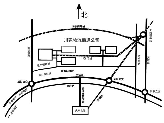 川建物流公司地理位置得天獨(dú)厚,地處成都市外北洞子口生資、建材、機(jī)電市場黃金地段,三環(huán)路成彭立交橋外200米,西緊靠新成彭公路;東臨國家鐵路寶成線、南通過成都市蓉北商貿(mào)大道僅4公里到達(dá)成都火車北站;北有成都鐵路西環(huán)線、成都繞城公路環(huán)繞其外;公司擁有5.8公里306鐵路專線與寶成鐵路在天回鎮(zhèn)接軌,自有GK1C、東方紅5型內(nèi)燃機(jī)車各一臺,并有編組站線。四通八達(dá)方便快捷,是貨物儲存中轉(zhuǎn)的理想場地。川建物流儲運(yùn)公司機(jī)械化操作程度高,各類裝卸設(shè)備齊全,有8噸、16噸、50噸汽車吊各一臺;有C7022、C5530、H3/36B等塔式起重機(jī)5臺;10噸、20噸行車3臺;3噸叉車2臺。本公司還有專業(yè)運(yùn)輸車隊(duì),各型載重汽車數(shù)十輛,并具有維修各種工程機(jī)械、汽柴油機(jī)動(dòng)車輛的能力和資格。