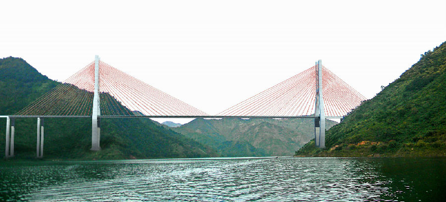 黔南布依族苗族自治州羅甸縣與廣西壯族自治區(qū)河池市天峨縣的交界處,跨越紅水河的高速公路斜拉橋,是銀百高速公路G69惠水至羅甸段(惠羅高速)的控制性工程,大橋2013年12月開工,整個工程預(yù)計在2016年10月完工,建成后貴陽至龍邦口岸距離將縮短至400公里,是貴州面向東盟最便捷的出境通道,對促進(jìn)當(dāng)?shù)氐慕?jīng)濟(jì)發(fā)展將起到積極推動作用。