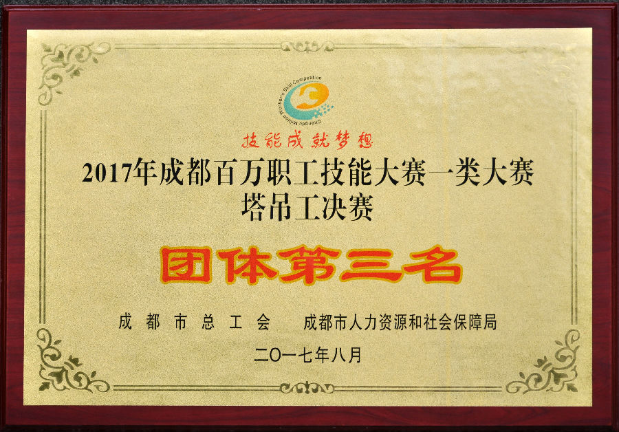 2017年8月14—15日,由成都市總工會、成都市人社局主辦、成都市總工會基建工委承辦、中建三局協(xié)辦的“技能成就夢想”2017年成都百萬職工技能大賽塔吊工比賽在中建三局中科院成都分院遷建項目成功舉行。來自成都市塔機制造廠家、建筑施工企業(yè)及設(shè)備租賃公司的17支代表隊參加了比賽。成都市總工會黨組書記張余松、成都市人社局副局長李軍等領(lǐng)導(dǎo)親臨現(xiàn)場觀摩、指導(dǎo),并為獲獎代表隊及個人頒發(fā)了獲獎證書。